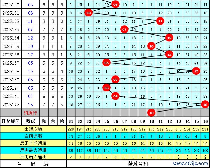 上期开出蓝球号码16,该号码在最近300期中出现了23次,其下期区分开出:蓝球05出现3次,蓝球01、04、08、11、13出现2次,蓝球02、03、06、09、10、12、14、15、16出现1次,蓝球07出现0次。本期五码蓝球参考02、04、05、10、15,独蓝存眷10。